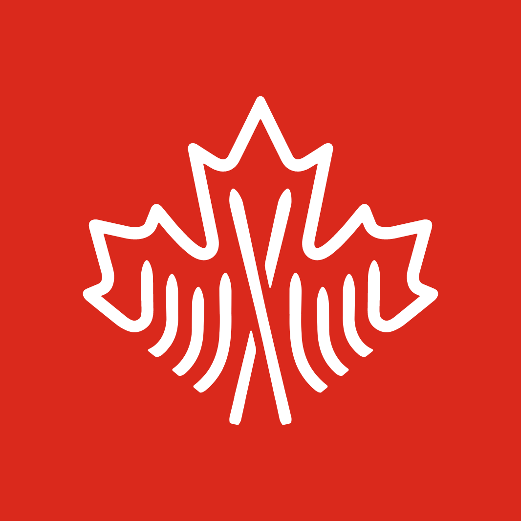 At the center of the identity is a custom maple leaf icon that serves as a symbol of national pride and connection to the Canadian landscape. Within the leaf, cross-country skis form the central spine of the mark, directly referencing the sport while reinforcing the structure of the symbol itself.
